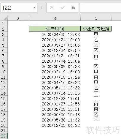 2、 数据源看到了,规则也弄清楚了,那就来看要求了!其实要求很简单,B列给定一个日期和时间,C列求出对应班组!从这要求来看,我们可以用查找类函数,vlookup,index,lookup,当然还可以使用offset为什么不用vlookup?因为它的出场费太高,咱请不起,所以找出场费相对较低的offset函数降低点成本吧!(其实是因为列数太多,全装进vlookup,会影响效率!)
