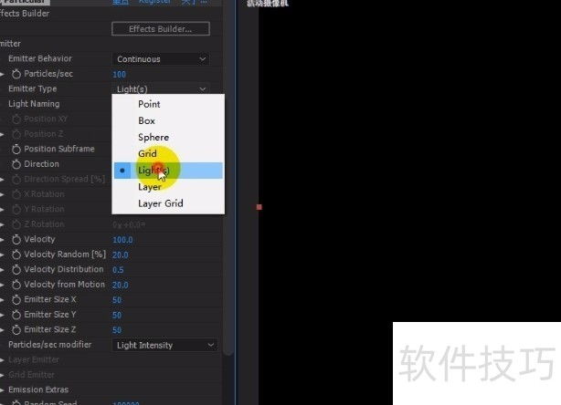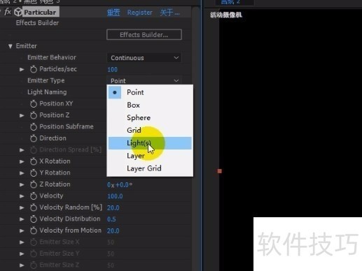 AE Particular 发射器中的灯光怎样使用?