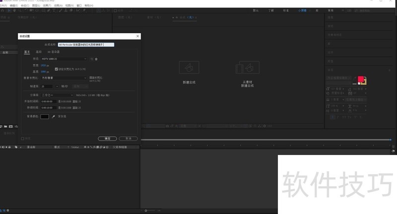 1、 运行AE软件,新建一个“AE Particular 发射器中的灯光怎样使用?”的HDTV 1080*25的合成。