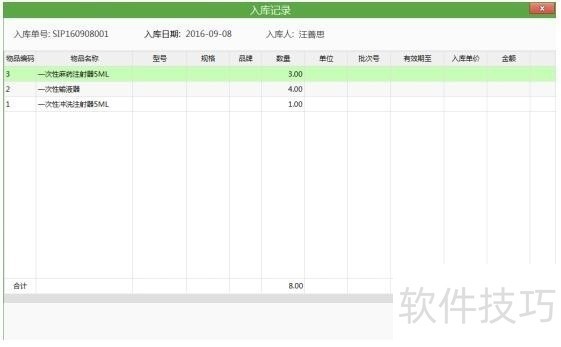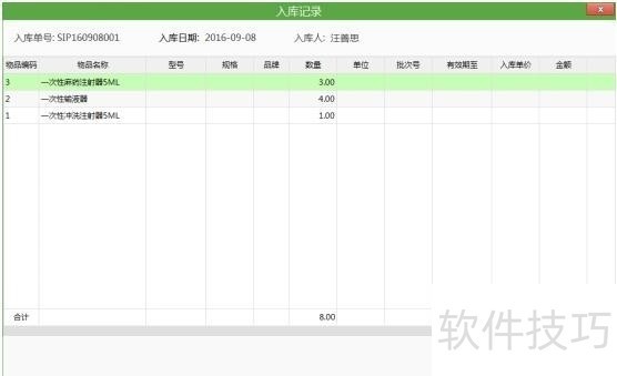 5、 双击后入库记录明细页面如下