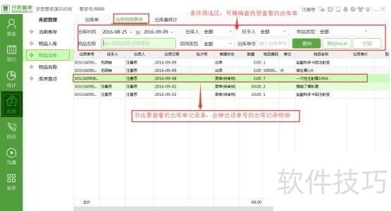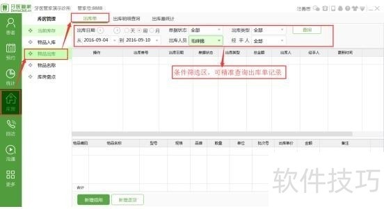 1、 查看出库单,可选择条件筛选,精准搜索你想查看的出库单记录
