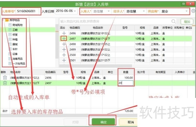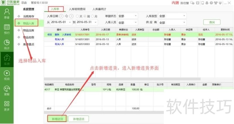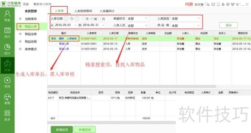 牙医管家口腔软件怎么新增、查询入库单?