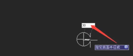 直接输入数值(如 30)回车,确定底面半径。