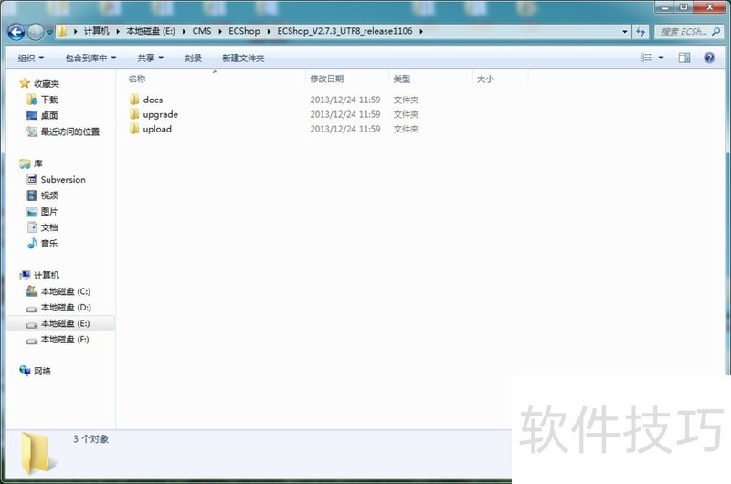 1、 登录网址www.ecshop.com免费下载ecshop网店系统最新版本v2.7.32将下载好的压缩包解压后得到三个文件夹
