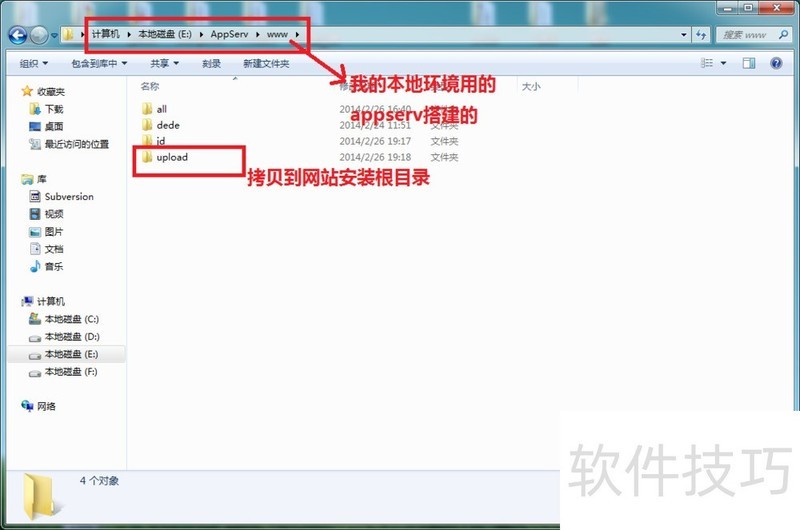 3、 把upload这个文件夹里面的内容拷贝到php运行环境的根目录(要安装多个ecshop时直接把upload拷贝到php环境的根目录就行,upload文件夹可以被改成自己喜欢的名字)。