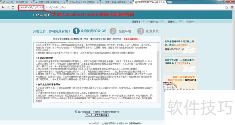 4、 打开浏览器输入localhost(或者localhost/upload安装多个),回车,进入安装欢迎界面。