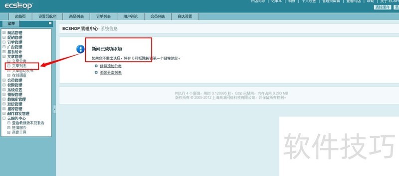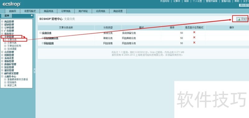 2、 进入后台,找到文章管理-文章分类-然后点击添加文章分类,如图: