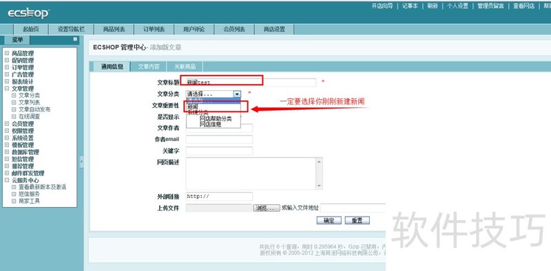 3、 增加一个文章“顶级分类”的新闻,如图:
