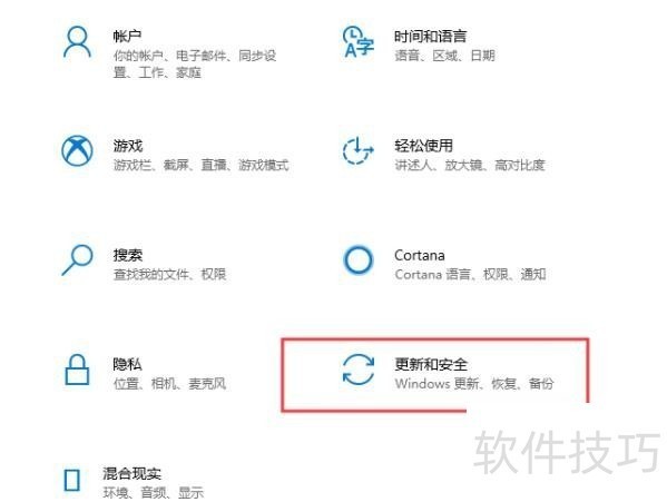 2、 待设置页面弹出后,选取更新和安全