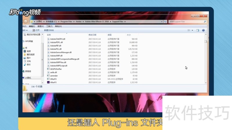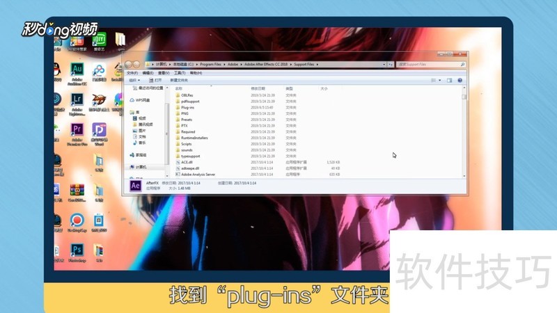 8、 点击AE软件,打开所在位置后插入Plug-ins文件夹,粘贴中文汉化补丁。