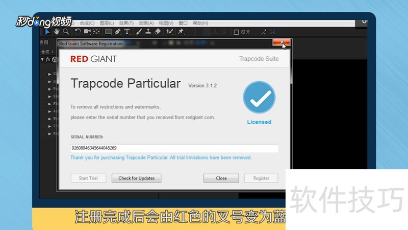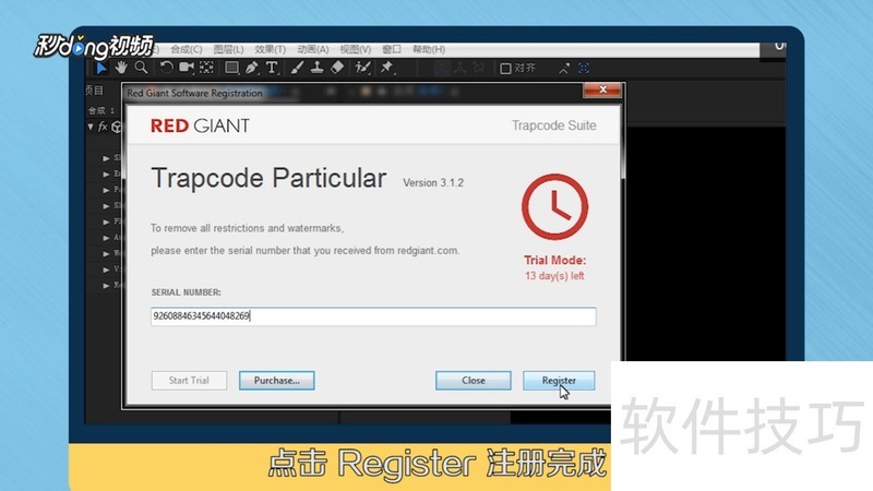 4、 复制插件对应的序列号,打开AE,点击“新建项目”和“新建合成”。