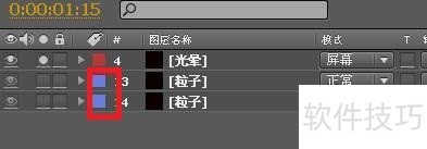 1、 先网络 AfterEffects怎样设置粒子发射器,0帧,设置Particular的发射器的位置,点击码表,如图,