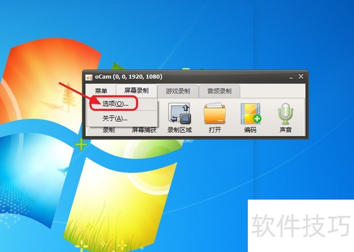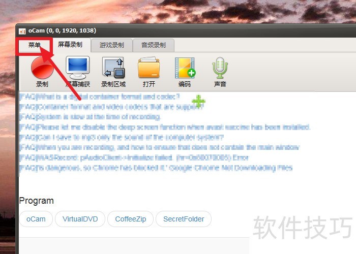 1、 首先打开ocam,点击【菜单】。
