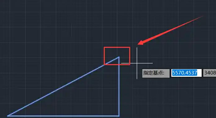 选择基点后,鼠标移动时图形会以该点为轴心实时预览旋转效果(需确保“动态输入”F12开启)。
