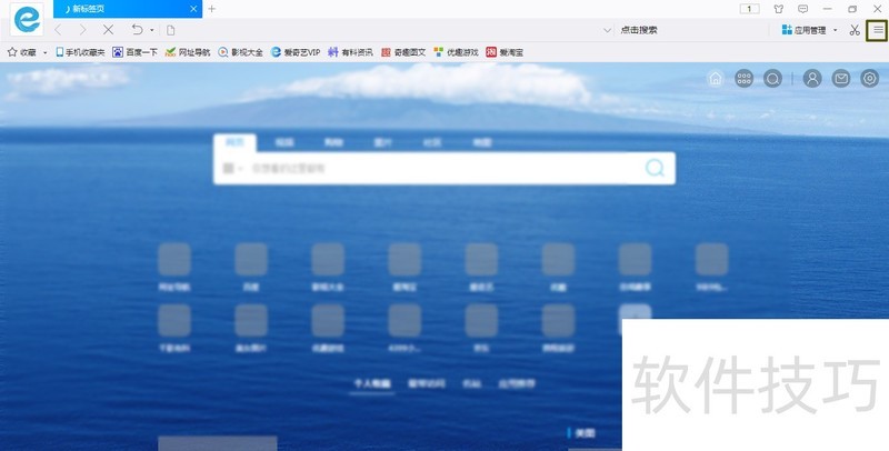 1、 打开电脑中所安装的“千影浏览器”,点击这里的三条横线图标。?