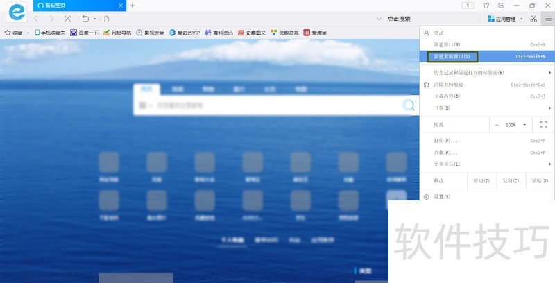 2、 接着在菜单中选择“新建无痕窗口”。?
