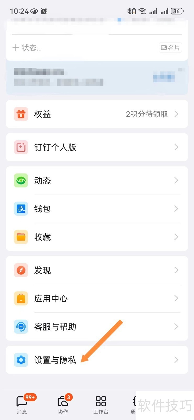 2、 接着,在新的页面往上滑动屏幕,点击设置与隐私。
