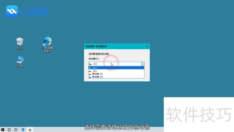 2、 点击打开磁盘清理程序,选择需要清理垃圾的驱动器,点击“确定”。