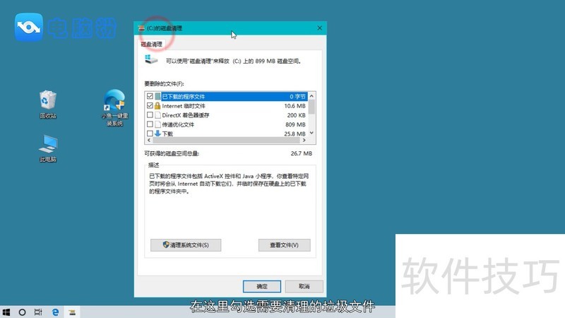 3、 勾选需要清理的垃圾文件,点击“确定”。