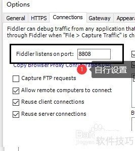 4、 点击connectins,勾选下面三个选项,可以抓取手机的数据