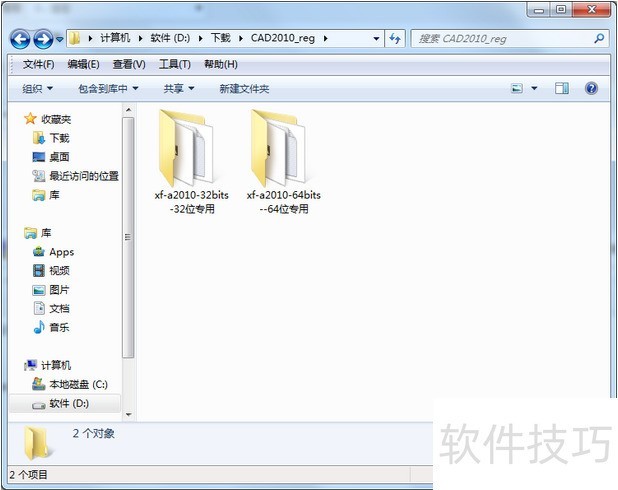 1、 ⑾略亟庋购罂梢钥吹?个文件夹,一个是cad2010注册机32位和cad2010注册机64位,大家根据安装的cad2010进行选择