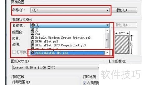 4、 在图纸尺寸选项尽量选择较大的数据,使导出的图片清晰;