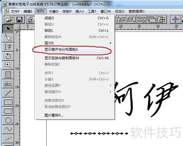 15、 ? ? 点击“排列”-“显示靠齐与分布面板”