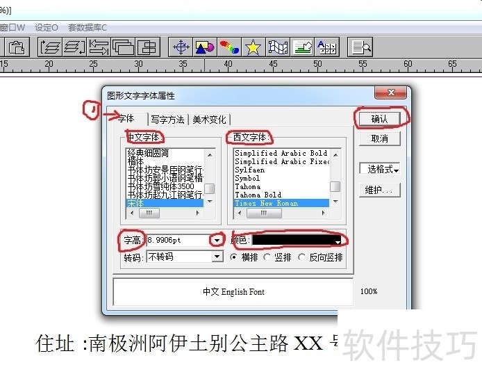 7、 ? ? 看到了吗?弹出的对话框里可以对所选的文字进行字体设置,选什么字体,字的大小,自己看着好看就好。