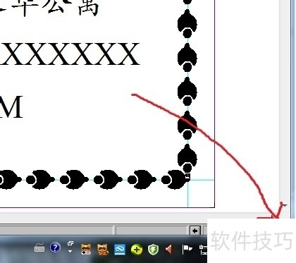18、 ? ? 用横向居中工具和纵向居中工具把所选的文字在页面里居中一下(在这里的一个技巧是用shift键把页面里的东西全部选中,然后再用这个功能)。19? ? 看到了吗,全部的内容都是页面里居中了。还有就是我们还要在文字的周围加上一圈艺术线之类的线条,看到红色箭头指的部位了吗,那个东西叫做标尺,用鼠标从里面拖到编辑窗口里里就拖出一条绿色的线,叫做参考线,这就好比是木匠干活里画的铅笔线一样。