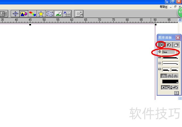 3、 在出现的图形面版中,第一个像笔尖的小图标,设置为0.