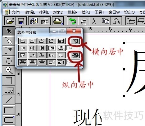 12、 ? ? 如图中所示,选中所要编辑的部分,再按下相应的对齐按钮即可以使文字部分在相应方向上居中。比如说:我选中“房屋出租”,然后点击“横向居中”,那么就可以使所选中的文字部分在页面横向的方向上居中了。