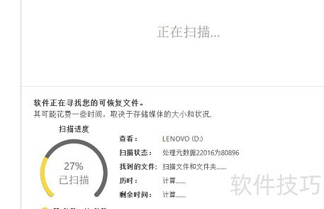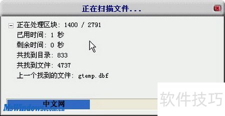5、 程序开始对所选的分区进行文件扫描,如图2010041621所示。?