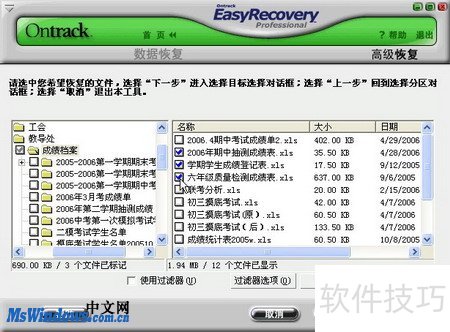 6、 完成扫描后,在“高级恢复”左窗格中会列出分区中现有的文件夹。用户可以展开相应的文件夹找到准备恢复的文件,并选中文件左侧的复选框,然后单击“下一步”按钮,如图2010041622所示。?