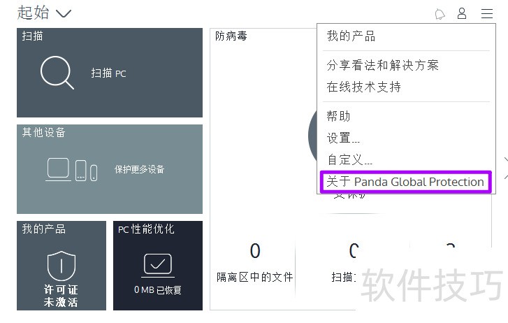 2、 接着在弹出的菜单中选择“关于Panda Global Protection”。