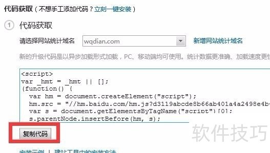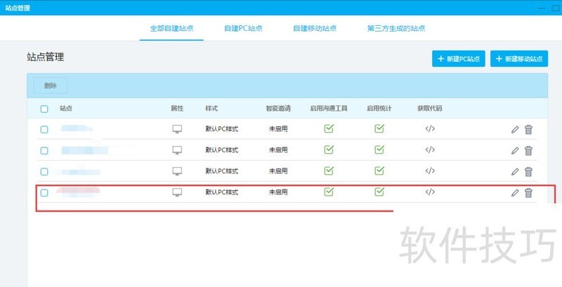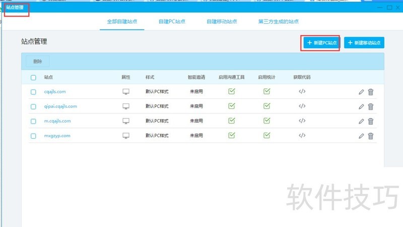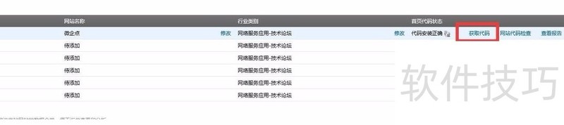 7、 确定后我们可以看到在【站点管理】新增了新建的域名站点,点击对应获取代码的位置