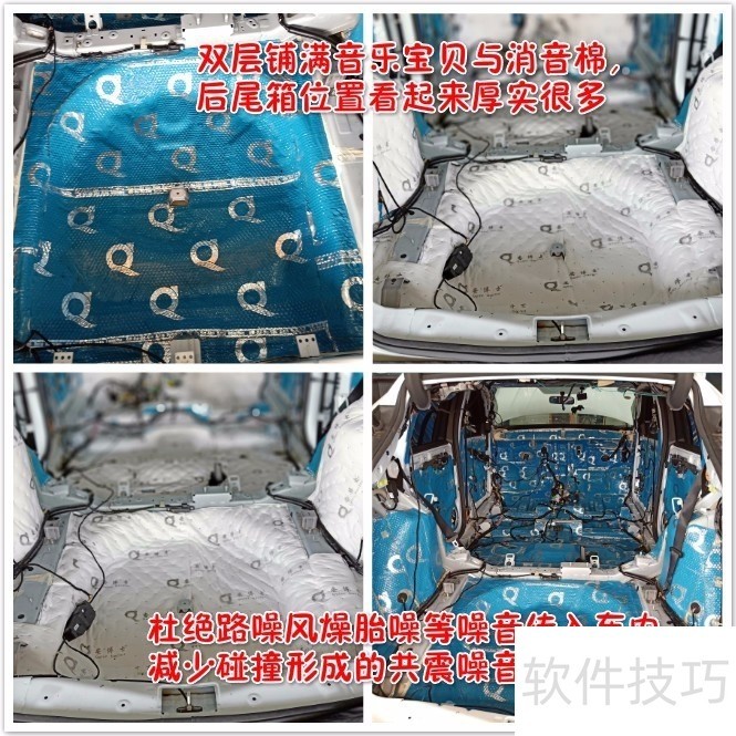 2、 【重点隔音部位】后尾箱隔音,后尾箱的空间大,容易形成一个空腔,给了路噪风燥后轮胎噪传入,同时行李的摆放也容易产生碰撞,造成新噪音的产生。通过双层的隔音,有效降低路噪,风燥,胎噪和共震噪音的传入。