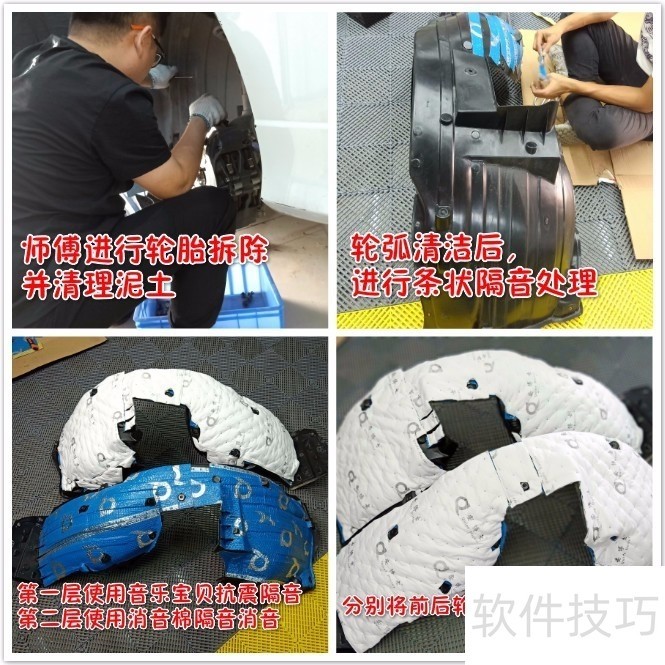 2、 ? 【重要隔音部位】四门隔音,先做门板的内层隔音,能有效增强内部钣金强度,防止汽车在行驶的过程中车门震动,阻止门板与外层钢板之间振动引起的共振噪声,第二层以整块粘贴,内外层结合,将车门打造成接近木质音箱,使车内音响效果更加完美。END1【重要隔音部位】轮弧隔音,把轮胎拆下来清理干净后,即可进行安装,先安装第一层音乐宝贝,有效消除低频噪音,第二层使用消音棉,消除高频噪音,双重防护能有效阻隔胎噪。