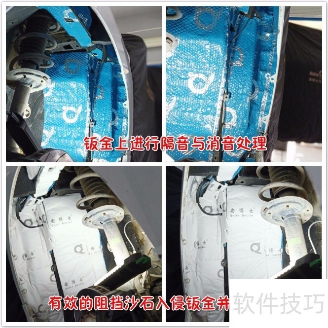 1、 隔音部位:四轮,翼子板,底盘,行李箱