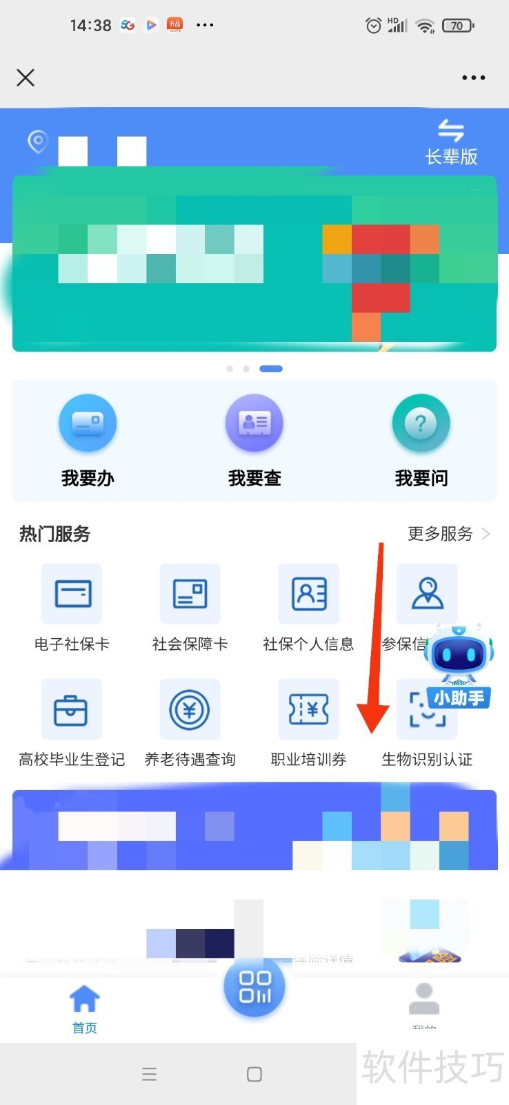 2、 点击服务大厅,如下图,看到生物识别认证