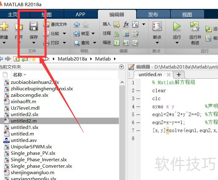 3、 利用Matlab中的solve函数求解方程和方程组,在脚本文件中输入程序如下图所示