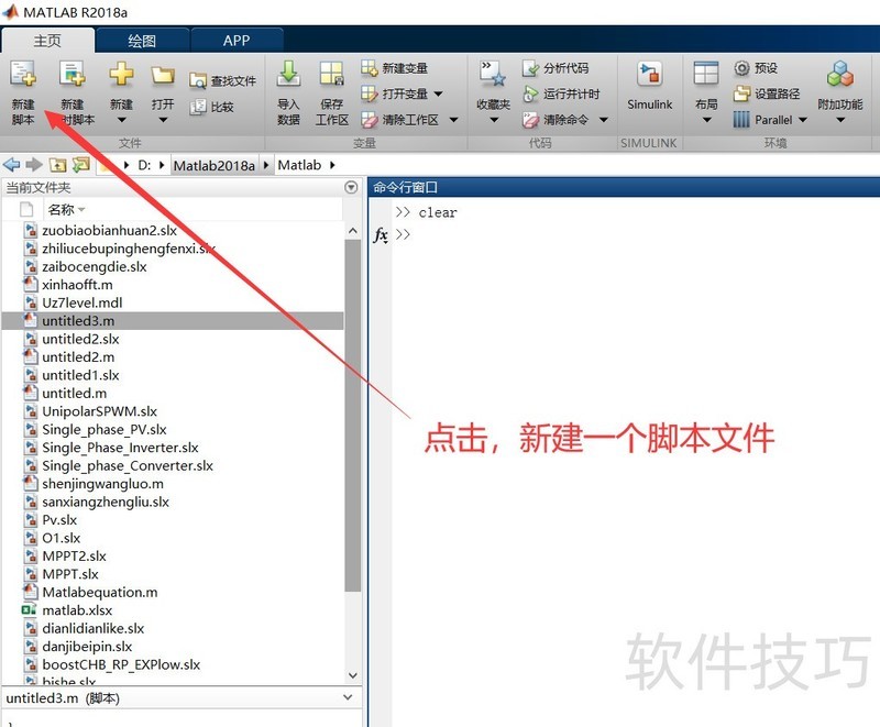 2、 点击“新建脚本”新建一个脚本文件(m文件),在脚本文件中编写程序方便修改