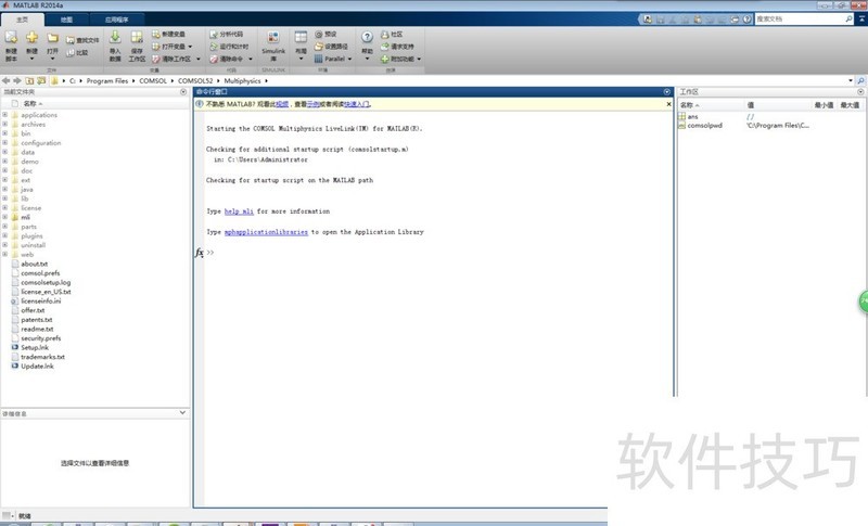 2、 安装comsol5.2在电脑;安装过程中comsol会自动识别已经安装的matlab;