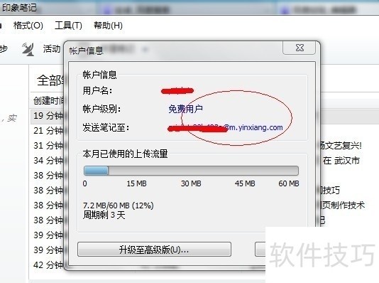 1、 在印象笔记里的“工具——账户信息”下会有一个“发送信息至”的Email账号,也就是可以通过Email发送需要收藏的文件到笔记里。