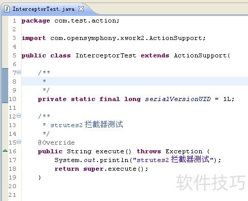 1、 struts2的拦截器可以在一切访问action方法之前 进行拦截处理。新建一个拦截器处理类