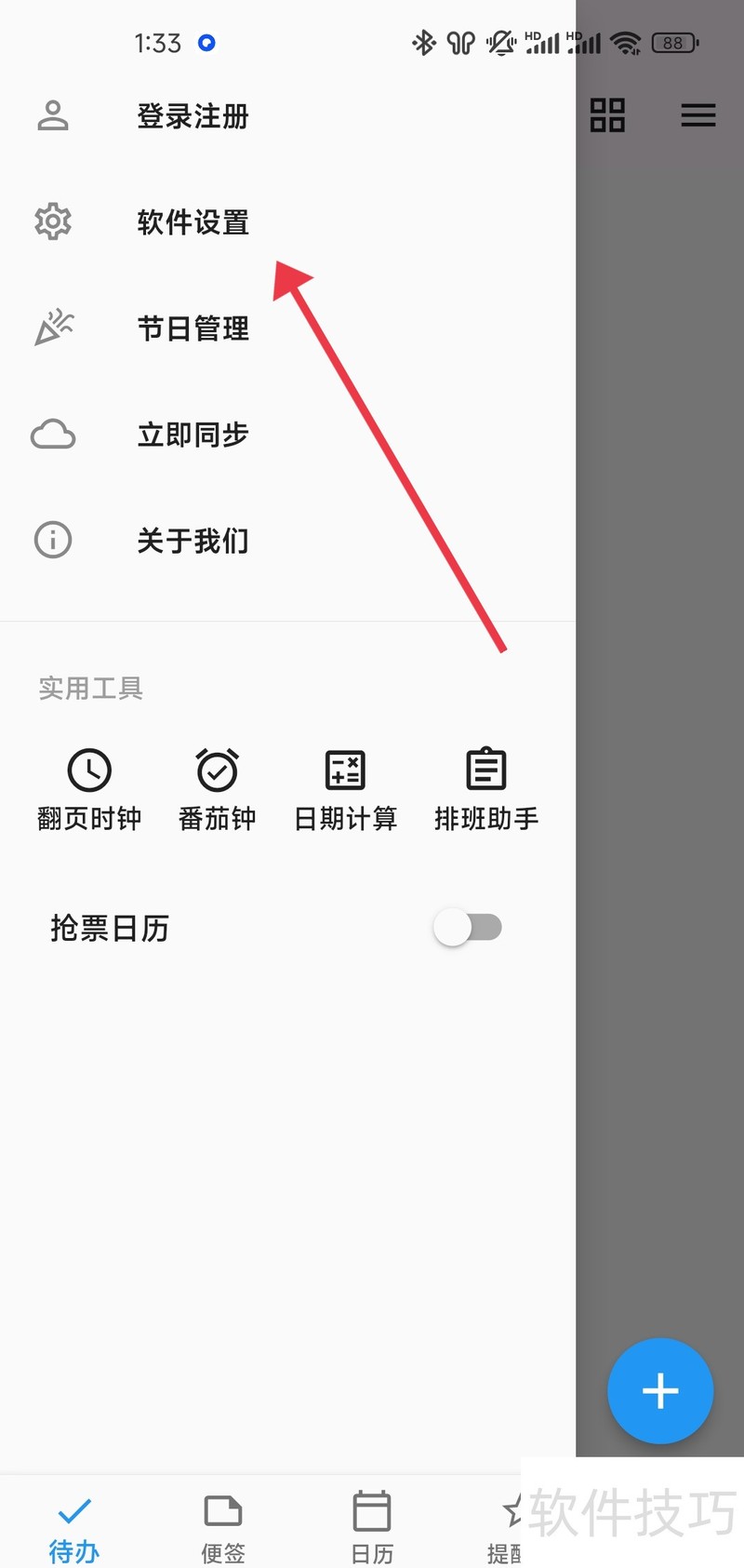 2、 第二步:打开侧边栏菜单,点击【软件设置】。