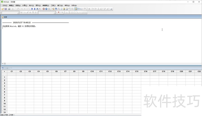 2、 输入数据,可直接复制,粘贴EXCEL中的数据到Minitab 下面的工作表中。