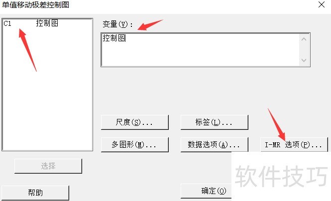 2、 按照如下步骤进行选择:统计→控制图→单值的变量控制图→I-MR,一般而言,我们用的都是单值移动极差图。3弹出的窗口中,双击选择数据,之后可以在下方选项中选择图形的格式,非必需,可以使用默认的。