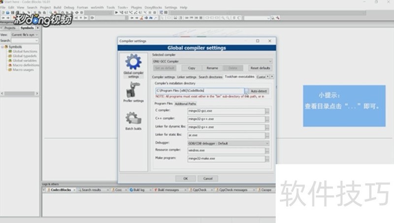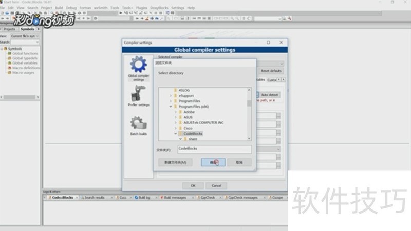 4、 查看编译器根目录,找到CodeBlocks安装目录下的自带编译器目录,点击“确认”。