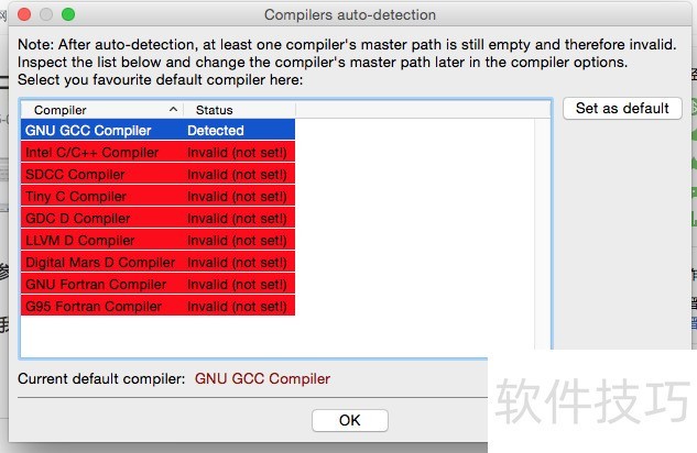 1、 打开CodeBlocks软件,会让你选择编辑环境,本机只有GCC。