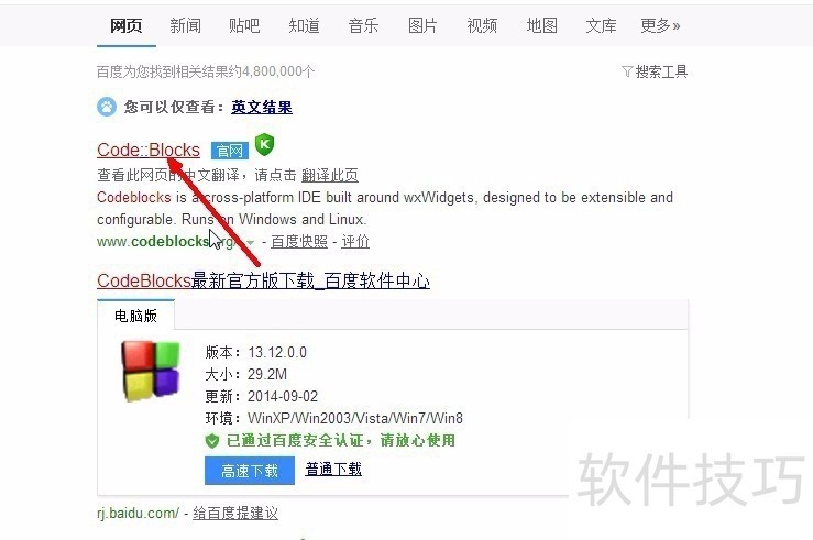 1、 首先打开网络,搜索codeblocks,点击进入官网。